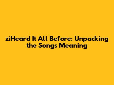 ZiHeard It All Before: Unpacking The Song's Meaning