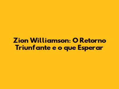 Zion Williamson: O Retorno Triunfante E O Que Esperar